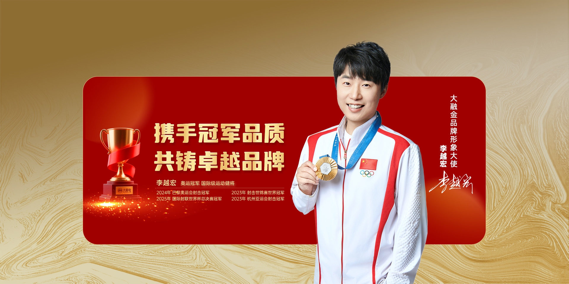 作为行业创新的践行者,大融金率先将中华传统文化与贵金属工艺深度融合。公司独家获得中国知名书法家王希顺先生书法作品授权,匠心打造“书法银条”系列产品,率先将中华传统书法艺术融入贵金属实物,赋予金银以文化价值与收藏意义。2026年,大融金迎来品牌升级重要里程碑——正式签约巴黎奥运会射击冠军李越宏先生担任品牌形象代言人。此次合作,不仅彰显品牌对卓越品质的追求,更传递“以实力立信,以匠心铸金”的企业精神。